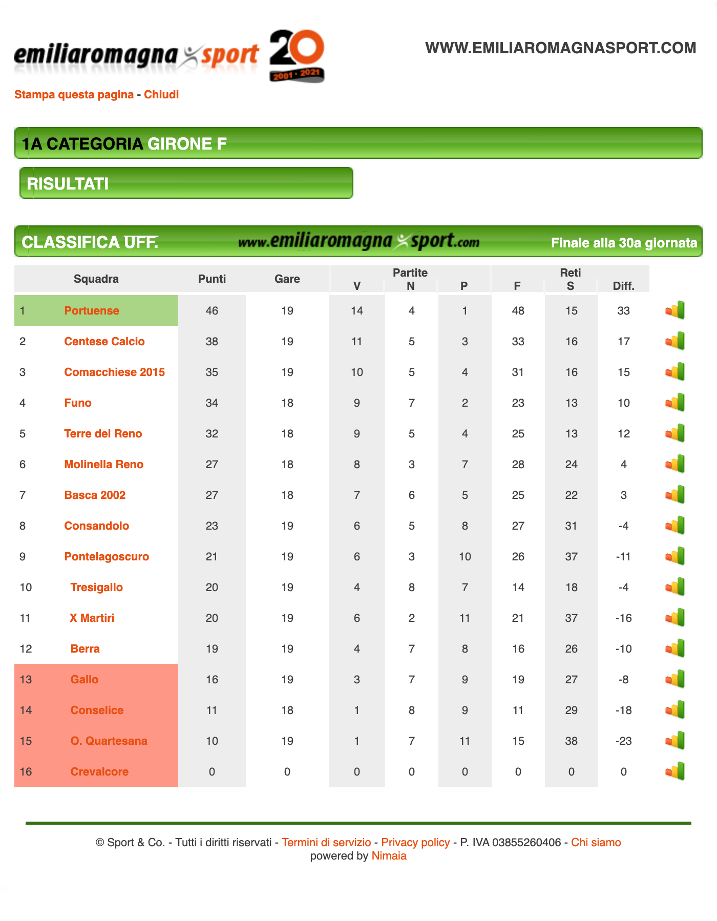 Dopo due anni di seconda categoria, è scattata la volontà e la voglia di cercare ancora la promozione e, con tanto impegno l’abbiamo ottenuta; infatti c’è stato un campionato bellissimo, che ci ha visti protagonisti con 58 punti e, distanziati dalla seconda (il Gambulaga) con 9 punti. A questo meritato successo, è seguita una grande festa in campo. (vedi foto)